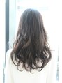 ロングレイヤーベースのパーマスタイルです。コールドウェーブをかけているのですがスライスは縦で毛先巻きでかけています。顔まわりにレイヤーを入れて動きが出るようにカットしているため動きのあるウェーブスタイルと絶妙にマッチング。