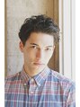 ショートレイヤーベースです。サイドを刈り上げない程度に短くし、くせによるニュアンスウェーブがワイルドさを演出。ダンディな方にも人気のスタイルです。