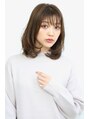 前髪を薄めにつくり、レイヤーを入れて動きをつけたセミミディアムスタイルです。スライドカットとストロークカットで束感を出しつつ丸みも持たせて柔らかな質感に。