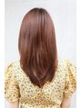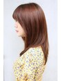 ワンレングスベースのストレートスタイルにレイヤーをいれています。前髪は厚めにして顔を引き締め、トップの位置をてっぺんにすることによりコンパクトに仕上げています。つやはもちろんまとまりを出す為にレイヤーはほとんど入れていません。