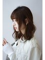 やや前下がりにカットした切りっぱなしスタイル。あえてカットラインを残す事で毛先に厚みがでてオシャレ度UP。カラーは全体にハイライトを入れて、グレージュカラーに。