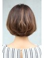マッシュベースに切り、全体にセニングとレイヤーを入れ、重くなりすぎないショートボブです。ワンレングスだと重すぎるので毛先は先細りにスライドカットでやや薄く。アシンメトリー感も出せますので伸ばしかけの方も仕事中の方にもオススメです。