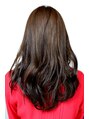 セミミディアムのウェーブのスタイルです。前髪は軽くして重すぎない印象にカット。アイロンのミックス巻きで重ならないように強くならないように巻いてランダムな毛流れをつくっています。