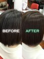 染めるたびに髪質が良くなるこだわりの白髪染め技術と、厳選した髪質改善トリートメント。特許取得の髪質改善カラー剤は髪と頭皮に優しく、染めるたびに弾力のあるうるツヤ美髪に。