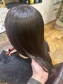 落ち着いたブラウンにオリーブのニュアンスをプラスし、冬服にも自然に馴染みます。髪質改善カラーで柔らかさとツヤが出やすく、顔色も明るく見えるのが特徴。大人っぽく上品で、女性らしい優しい印象に仕上がります。