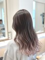 透明感たっぷりのグレージュカラーに、毛先へ向かってほんのりピンクベージュを重ねた柔らかいグラデーションデザイン。暗めベースでも重く見えず、光に透ける上品なツヤ感が魅力の大人可愛いロングスタイルです。