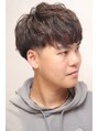 爽やかなオン眉ツーブロックマッシュのスパイラルパーマスタイルです。もさくない、スッキリとしたやや緩めのスパイラルパーマで毛束の動きをつけてスタイリングが簡単になります。