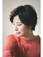 ふんわり立ち上げたトップとサイドパートがおしゃれに映える上品なショートスタイル。流しながら毛先を少し遊ばせて。6トーンのオリーブブラウンで落ち着いた艶感のあるスタイルに。