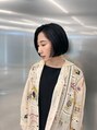 カラーは地毛より暗いブルーブラックです!カットは骨格矯正で頭を小さく、綺麗にみせるカット!一人一人の骨格に合わせてカットをしています!スタイリングも簡単でお家での再現性も高いです!カット/ショート/髪質改善