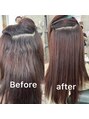 髪に艶がでる美髪矯正です!癖がなくなりボリュームも抑えられ軽くなったように感じます!従来の縮毛矯正より柔らかさが全く違います!!同時に髪質改善トリートメントも施術していくので感じた事のない手触りを実感できます!髪質改善/美髪/縮毛矯正