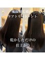 ダメージを、最小限に抑えるための、前処理、中間処理、後処理ケラチンやCMC、脂質など高濃度成分の髪質改善トリートメントを使用。疏水化をさせるからこそよりトリートメント効果をワンランク上へ!縮毛矯正、髪質改善をするなら南堀江アトレがオススメ