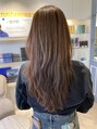 ココアブラウンの深みある色味が髪にツヤと透明感を与え、肌なじみも抜群。仕上げは軽めのオイルで束感とまとまりをプラス。巻かなくても自然な揺れが出るので、朝のスタイリングも簡単。大人の女性にぴったりな、上品でこなれた印象のロングヘアです。