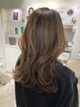 明るめカラーカーキベージュくびれセミロング40代