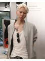 梅田/フェザーショート 刈り上げセンターパート ホワイトブロンド エンドカラー 波打ちパーマ サーフカール
