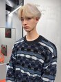 梅田/フェザーショート 刈り上げセンターパート ホワイトブロンド エンドカラー 波打ちパーマ サーフカール