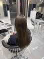 赤みを抑えたオリーブグレージュで、柔らかさと透明感を引き出したトレンドカラーです。グレージュのくすみ感をプラスすることで、光に透けるような上品な艶感に。ストレート仕上げでまとまりも良く、ナチュラルなのに垢抜ける美髪スタイルです。