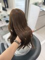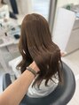 緩やかな大きなウェーブが、女性らしい柔らかさと華やかさを演出。深みのあるオリーブベージュで、肌馴染みの良い、潤い溢れるツヤ髪に。髪の芯からケアするトリートメントで、指通りも滑らかに。大人可愛いスタイルを叶えたい方に最適です!