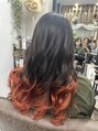 グラデーション裾カラーでビビットオレンジ裾カラーは、傷んでしまったり、飽きてしまったら切れば良い!という事でチャレンジしやすい!!オシャレ感!間違いなし!
