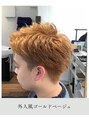 黒髪をブリーチをして明るめのゴールドベージュのお色を被せやんちゃに見えない金髪系にイメチェン!真っ黒からだとおしゃれ感と若々しさが一気に出ますね( ^ω^ )