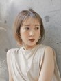 ボブ ホワイトグレージュ デジタルパーマ チェリーブラウン