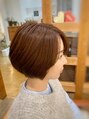 オトナ女子におすすめな丸みショートボブです。えりあしはすっきりとさせメリハリをつけることでスタイルアップ効果があります。カラーは深みのあるコーラルブラウンで、艶のある仕上がりに。