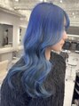 名古屋/名駅/ホワイトグレージュ コンマヘア くすみブルー ダークアッシュ ニュアンスカラー バイカラー