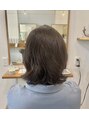 肩ラインのボブベース。耳ラインより大きめのカールを出して、くびれ風ボブスタイルに。スタイリングはオイルを馴染ませて手ぐしで整えるだけの簡単スタイルです。