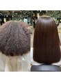 弱酸性の薬剤を使用することにより最小限のダメージで地毛のような違和感のない艶髪になります。初めて縮毛をかける方、今までの縮毛に満足されていない方は是非一度【scintillerオリジナル弱酸性縮毛矯正】にお任せください。