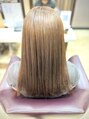 ブリーチやダブルカラーをしないで、赤みやオレンジみを抑えたハイトーンのベージュブラウンカラーに仕上げたロングスタイルです。カットはストレートでも巻き髪に対応した毛量調整をおこない、バランスの取れたスタイルにさせていただいております。