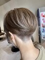 えりあし刈り上げでカッコ良さのなかに柔らかい丸みをだした女性らしいハンサムショートカラーはアッシュベージュでより軽やかに