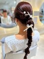 - ヘアセットフィンガーウエーブも入れて 後ろはねじりを入れたお団子にリボンと一緒に三つ編みしました