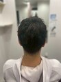 襟足からサイドまでツーブロックを1周入れて、全体は自然につながるようにカット。後ろから見てもスッキリして、清潔感のあるスタイルです。伸びてきても形が崩れにくいのもポイントです。