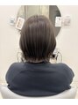 ぷつっとした重みのあるボブにトップのみレイヤーを入れて巻いた時に軽さを出しお顔の形をひし形に見えるように補正しながらカットします。