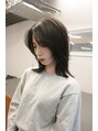 鎖骨ラインのミディアムレングスに前上がりのレイヤーで顔まわりにポイントがくるように設定して顔に雰囲気をプラス。レイヤーを高めにするために前髪の長さも分けても長すぎないようにカット。顔の雰囲気に合わせてダークトーンのカラーに。