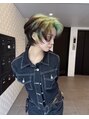 彩度を下げる事によって肌にも服にも馴染むグリーンになります!ペールグリーン/グリーンカラー/ハイトーンカラー/ケアブリーチ/ダブルカラー/ブリーチカラー/渋谷/原宿