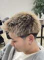 フェザーショート 刈り上げセンターパート ホワイトブロンド エンドカラー 波打ちパーマ サーフカール