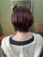 - カラー剤で12レベルまで明るくして肌なじみのよいチェリーレッドでお染めしました