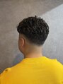 ローゾーンはフェードにさせてスッキリと刈り上げハイゾーンはセットしやすいようにパーマをかけさせて頂いています!ビジネスシーンにも問題のない程度の強さに仕上げていますのでパーマ初心者の方にもセットが楽でおすすめできるスタイルになっています!