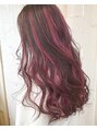 セミロング|ピンクメッシュ|ピンクハイライト|バレイヤージュ