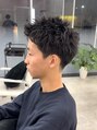 - 藤沢/スパイキーアフロ チャコールグレー ショートセンターパート サーフフェザー プードルパーマ
