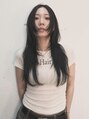 ロング 前髪無し レイヤーカット ウェーブスタイルUP