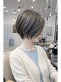 トップにふんわり丸みを持たせた大人のショートレイヤー。襟足はすっきり整え、白髪を活かして自然で若々しい印象に。毎日のお手入れも簡単な上品スタイルです。