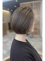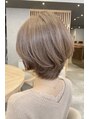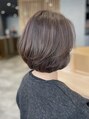 丸みのあるショートボブスタイル。普段あまりスタイリングをされない方におすすめの、乾かすだけでキマるまとまり抜群のスタイルです。カラーはイノアカラーでしっかり艶感を。重たく見えない暗めのカラーで落ち着いた印象に。