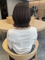 ワンレンベースに表面に軽さを出し伸ばしかけも可愛い外ハネスタイル。結べる長さなのでアレンジもしやすく、お顔周りに軽くレイヤーを入れて後毛もオシャレに。赤みを抑えたベージュ系のお色で軽やかな印象に。