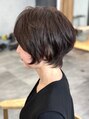 シンプルでまとまりが良く、洗練されたイメージにしてくれるハンサムショートスタイル。シルエットのバランスや、毛先に質感にこだわってデザインいたします。カラーは明るめのモカベージュ。イノアカラーを使用することで艶やかでダメージレスな仕上がりに。