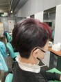 - アシメカットに、白髪部分にレッドマニキュアで!
