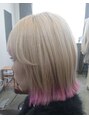 切りっぱなしボブ/外ハネボブ/毛先カラーピンク