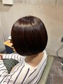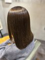 年齢とともに気になりやすい乾燥、うねり、ツヤ不足にアプローチできるULTOWA水素トリートメントを使用しています。カラーは赤みや黄みを抑えた、落ち着きと透明感を兼ね備えた艶ブラウンに。肌なじみがよく、上品で清潔感のある印象に仕上げました。