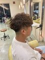 サイドとバックは高い刈り上げでさっぱりしてトップは少し短めにしてパーマとレイヤーで動きを出しました!フロントはミックスにパーマを巻くことでボリュームのあるフロントが横から見るシルエットが完璧になります!パーマ全般得意です!お任せ下さい!
