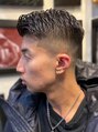 シャープなフェードカットでサイドを引き締めつつ、8:2分けでトップにしっかりとした毛流れとメリハリをつけることで、男らしさと洗練されたスタイリッシュさを兼ね備えたスタイルが特徴です。